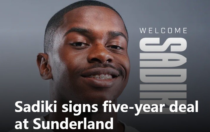 7月5日讯 英超升班马桑德兰官方宣布,签下20岁的民主刚果中场诺亚-萨迪基,双方签约五年。