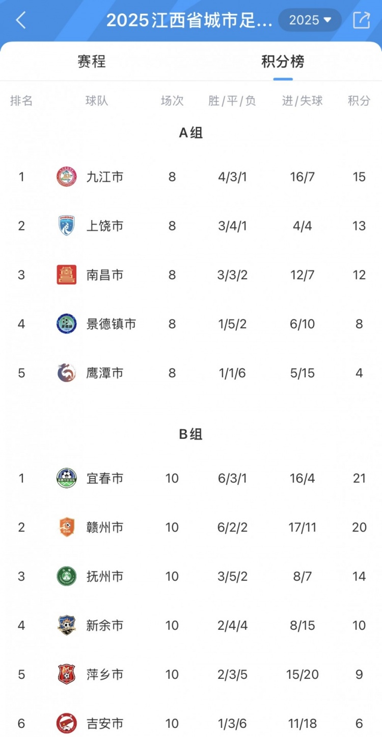 9月15日讯 今天下午,2025江西省城市足球超级联赛(赣超联赛)第二轮淘汰赛抽签仪式举行,2025赣超联赛八强球队对阵情况出炉,具体如下: